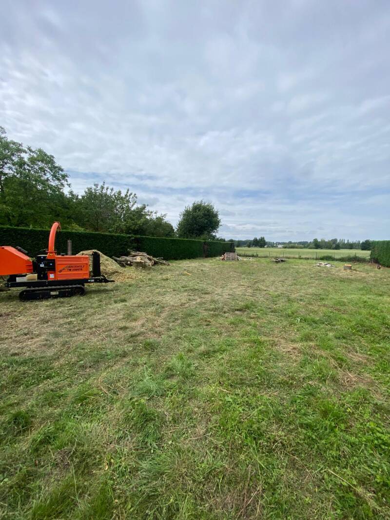 Alle takken verhakseld en gebruikt als bodemlaag in de tuin. Sommige takken hingen boven het huis, deze zijn afgevangen om schade te voorkomen.